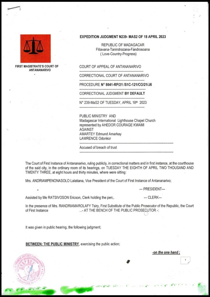 Larry Odonkor loses against Lighthouse: Sentenced to 2 years in prison in Madagascar and fined $16.7k